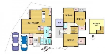 (1F:52.85平米 2F:45.36平米)