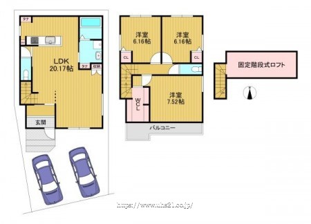 (1F:47.01平米、2F:43.88平米)