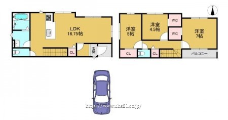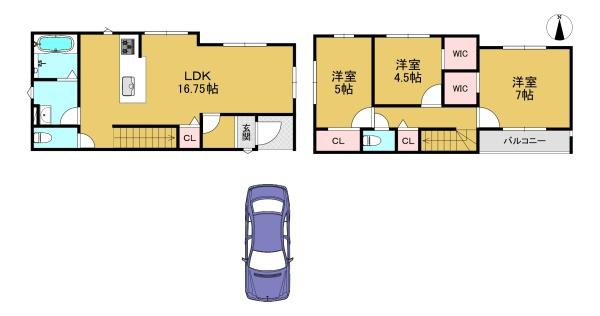階数 区分 広さ 1F LDK 16.8帖 2F 洋 7.0帖 2F 洋 5.0帖 2F 洋 4.5帖 - 駐車場
