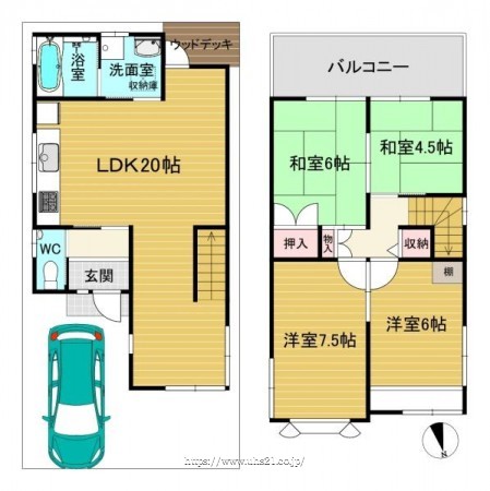 階数 区分 広さ 1F LDK 20.0帖 2F 洋 7.5帖 2F 洋 6.0帖 2F 和 6.0帖 2F 和 4.5帖 - 駐車場