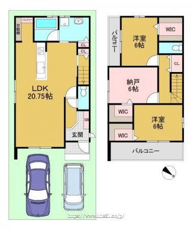 階数 区分 広さ 1F LDK 20.8帖 2F 洋 6.5帖 2F 洋 6.0帖 2F S 6.0帖 - 駐車場