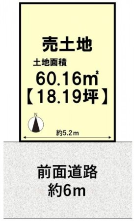 南向きで陽当たり良好!閑静な住宅地の整形地!前面道路ゆったり6m!