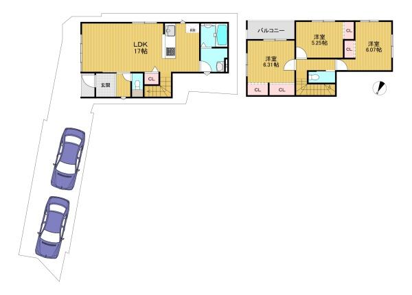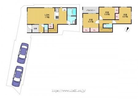 階数 区分 広さ 1F LDK 17.0帖 2F 洋 5.3帖 2F 洋 6.1帖 2F 和 6.3帖 - 駐車場