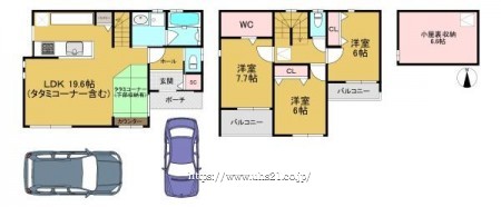 階数 区分 広さ 1F LDK 19.6帖 2F 洋 7.7帖 2F 洋 6.0帖 2F 洋 6.0帖 - 駐車場
