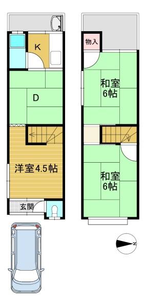 階数 区分 広さ 1F 洋 4.5帖 2F 和 6.0帖 2F 和 6.0帖 - 駐車場