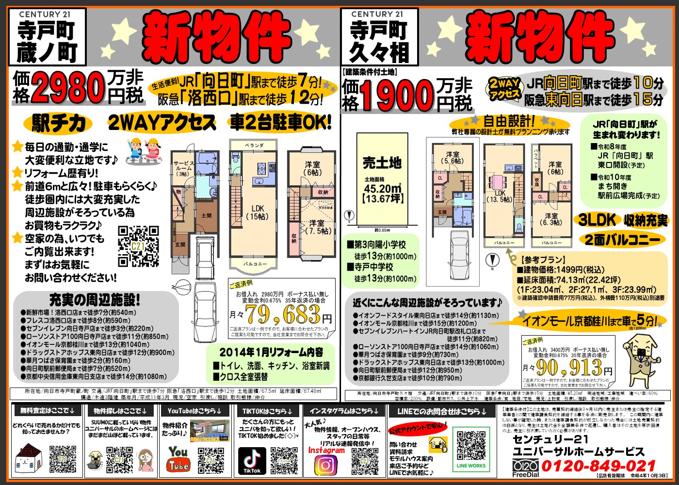 WEBチラシ詳細 2022年09月01日公開 ☆新登場☆寺戸町 注目の2物件! クリックすると、大きな画像でご覧いただけます。 このチラシの関連物件一覧 ********** ***万円 ****** ****** 成約
